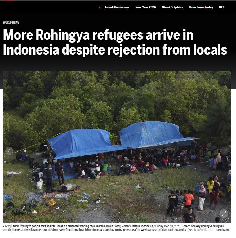 Dua media asing, Associated Press (AP News) dan ABC News, menyoroti kedatangan pengungsi Rohingya ke Indonesia yang terjadi pada Sabtu (30/12/2023) malam di Pantai Mercusuar, Desa Karang Gading, Deli Serdang.