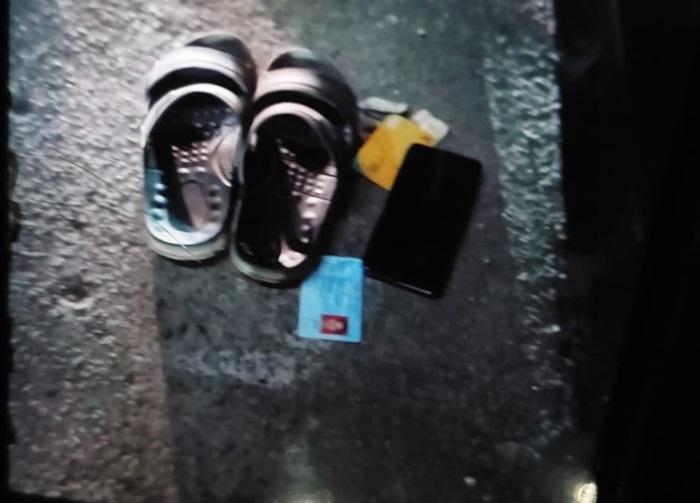Di lokasi kejadian ditemukan sejumlah barang milik korban, di antaranya sepeda motor, ponsel, sandal dan KTP.