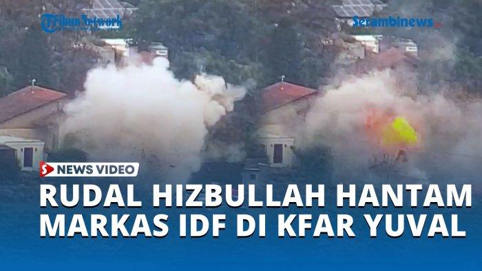 Dalam video terlihat detik-detik sebuah rudal menghantam sebuah bangunan yang menjadi markas Israel di Kfar Yuval.