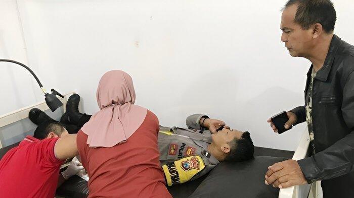 Dua orang anggota Polsek Bandung, Aipda Andi Triyono (43) dan Briptu Septia (28) mengalami luka sabetan senjata tajam.