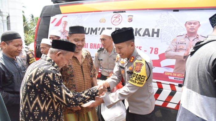 "Alhamdulillah hari ini kami melaksanakan kegiatan Jum'at Berkah dalam rangka hari bhayangkara ke 78, berbagi dengan sesama, kami membagikan nasi kotak kepada para jamaah shalat jumat, semoga ini memberikan keberkahan untuk kita semua, " ucap AKBP Jatmiko.(*)