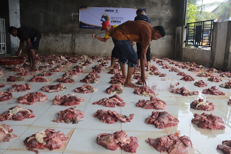 Daging hewan yang disembelih kemudian dibagikan kepada warga kurang mampu.