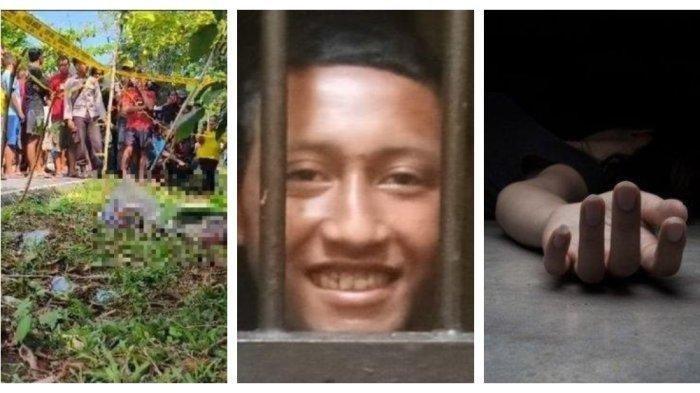 Didekat potongan tubuh manusia itu tampak seorang pemuda yang diduga adalah pelaku tengah duduk sembari memegangi plastik dan karung.