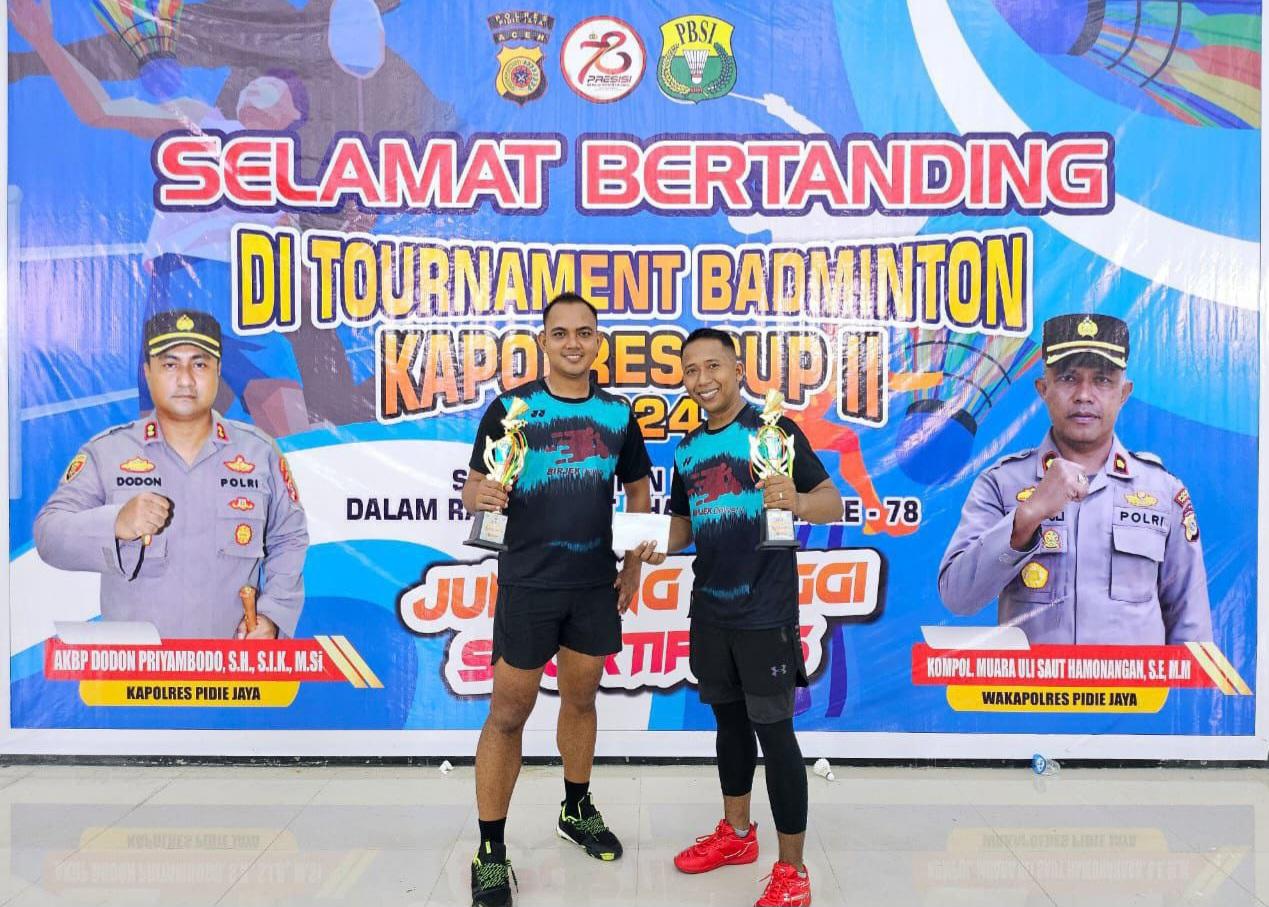 Dua Prajurit Badak Hitam Sabet Juara Turnamen Bulu Tangkis HUT Bhayangkara di Pidie Jaya