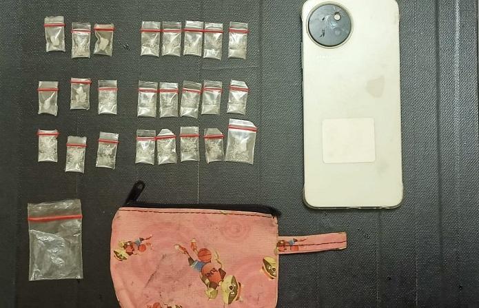 Dari jumlah itu 3 paket ditemukan di dalam plastik klip lis merah, 23 paket di dalam plastik klip berwarna putih bening, dan 9 paket di dalam dompet tersebut, serta satu unit handphone dan dan satu buah dompet emas warna coklat.