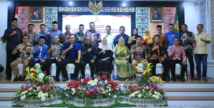 SERAMBINEWS.COM, BANDA ACEH - Pj Wali Kota Banda Aceh, Ade Surya menggelar acara silaturahmi dan jamuan makan malam bersama unsur Forum Komunikasi Pimpinan Daerah (Forkopimda) di Pendopo Wali Kota Banda Aceh, Senin (29/7/2024).