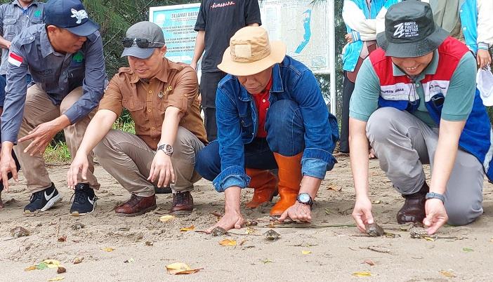 1.107 Ekor Tuntong Laut Hasil Penetasan Telur Dilepasliarkan ke Ujung Tamiang