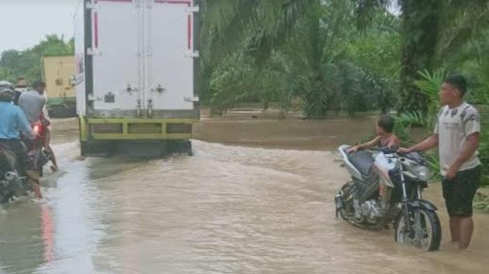 BREAKING NEWS - Banjir Rendam Jalan Nasional di Aceh Singkil, Tiang Listrik Timpa Tangki CPO