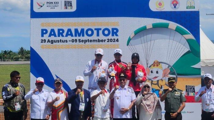 15 Atlet Aerosport Paramotor PON Terima Medali di Venue Bandara Malikussaleh Aceh Utara