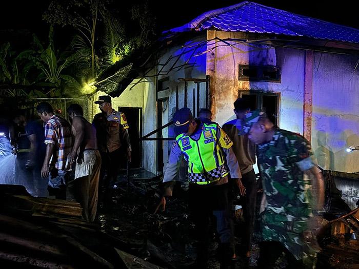 Tim gabungan itupun terus berjibaku memadamkan kobaran api yang membumbung tinggi hingga menyambar rumah permanen. 'Kedua aset ludes terbakar," ujarnya.