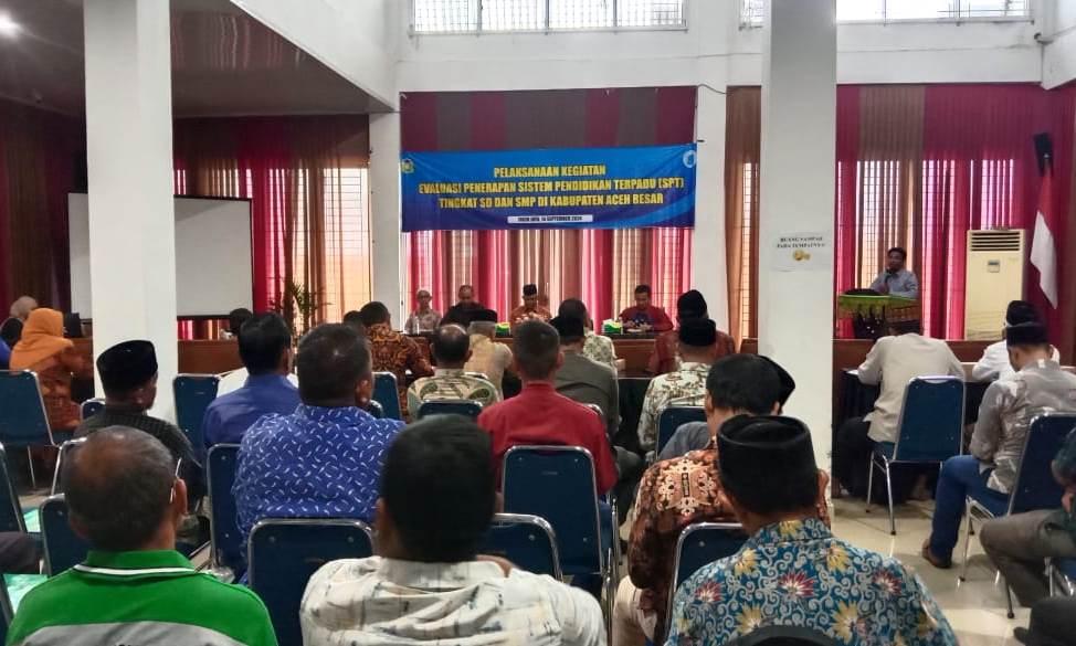 SERAMBINEWS.COM, JANTHO - Pemerintah Kabupaten Aceh Besar melalui Dinas Pendidikan dan Kebudayaan dan Majelis Pendidikan Daerah melakukan evaluasi penerapan Sistim Pendidikan Terpadu (SPT) di Aula Dekranasda Aceh Besar, Gampong Gani, Kecamatan Ingin Jaya, Aceh Besar, Sabtu (14/09/2024).