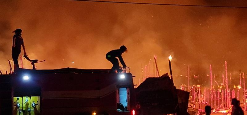Saat ini di lokasi ada sekitar seribuan warga memadati lokasi kebakaran.