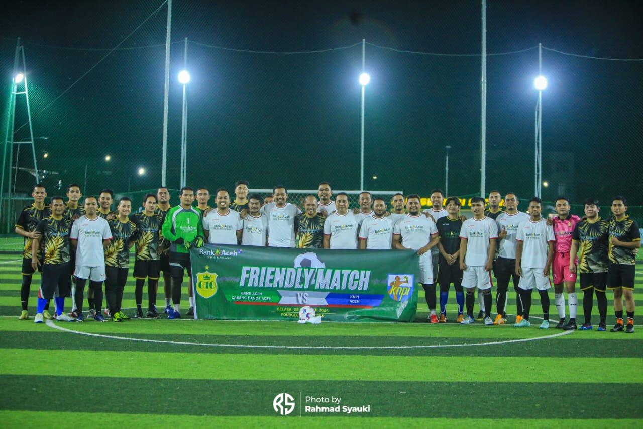 SERAMBINEWS. COM, BANDA ACEH - Bank Aceh Cabang Banda Aceh berhasil menundukkan KNPI Aceh dengan skor tipis 6-5 dalam laga persahabatan yang berlangsung di lapangan Fourgee Mini Soccer, Selasa (8/10/2024).