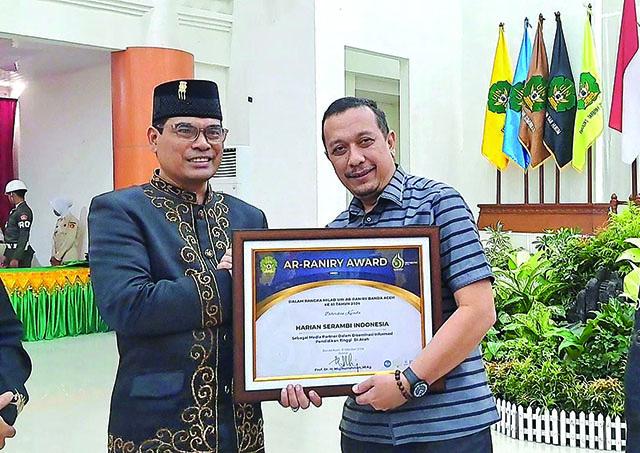 Pada kesempatan yang sama, Pemimpin Redaksi (Pemred) Serambi Indonesia, Zainal Arifin M Nur menerima Anugerah Ar-Raniry Award kategori Media Partner dalam Diseminasi Informasi Pendidikan Tinggi di Aceh yang diserahkan langsung Rektor Prof Mujiburrahman.