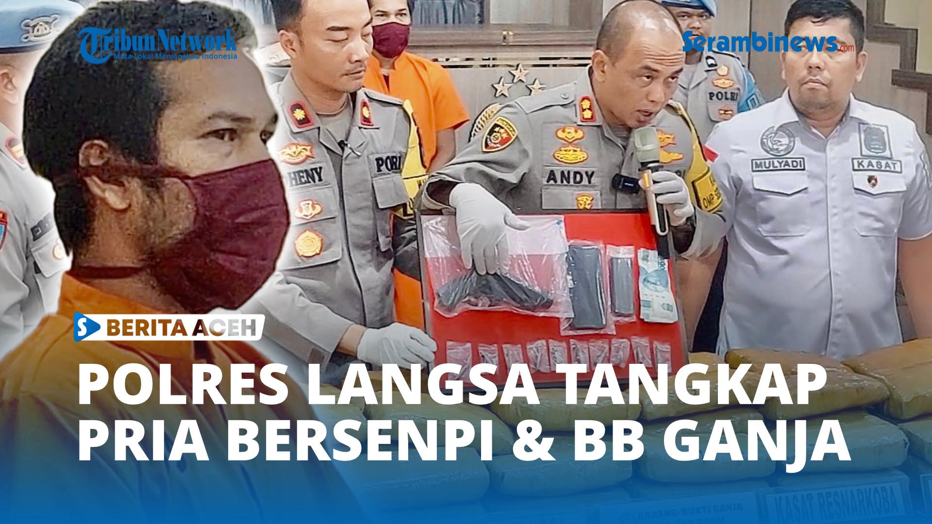 VIDEO - Polres Langsa Tangkap Pria Bersenpi Rakitan Bawa Ganja 58 Kg