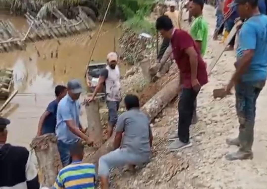 SERAMBINEWS.COM, LANGSA - Karena hingga kini tidak mendapat perhatian Pemerintah Kabupaten Aceh Timur, warga terpaksa memasang kayu sebagai penahan badan jalan yang longsor akibat abrasi sungai.