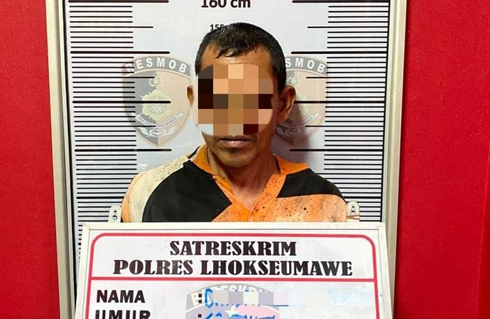SERAMBINEWS.COM, LHOKSEUMAWE - Personel Satreskrim Polres Lhokseumawe menangkap pria berinisial DM (49) di gubuk kebun karet Dusun Alue Garot, Gampong Teupin Reusep, Kecamatan Sawang, Aceh Utara.