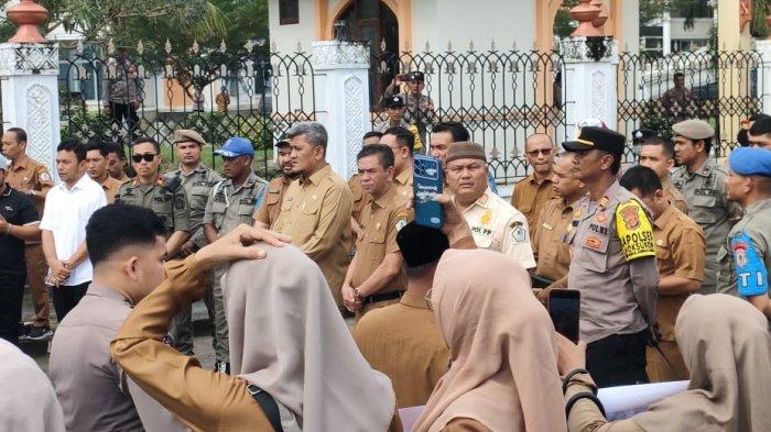 Ratusan Personel Kawal Unjuk Rasa Tenaga Honorer di Aceh Utara