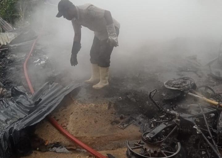 Rumah Warga di Pelosok Langsa Terbakar, 1 Unit Honda CBR Ikut Terpanggang Api