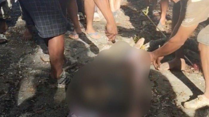 Warga segera mengeluarkan tubuh korban dari perut ular dan membawa ke rumah duka.