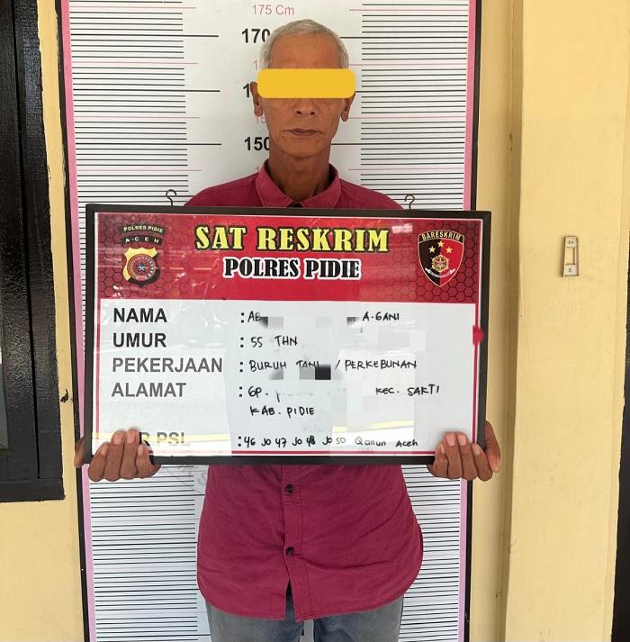 Pengungkapan tersebut, dengan menangkap pelaku tunggal lelaki berinisial AR (55), warga Kecamatan Sakti, Kabupaten Pidie di rumah istrinya, Selasa (8/7/2025).