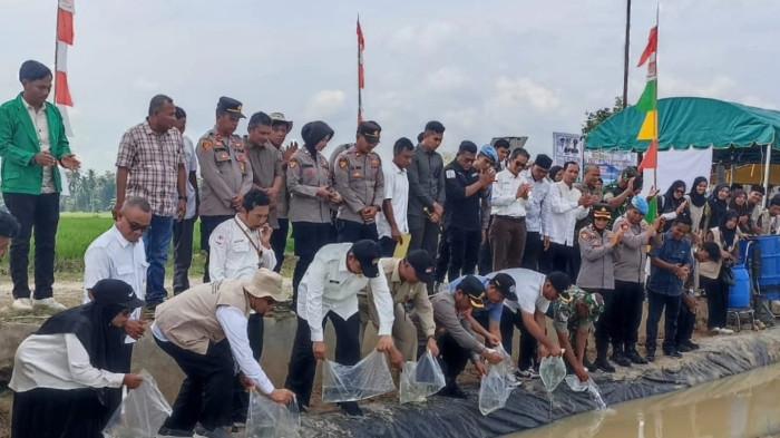 Sebagai simbol dimulainya program, para pejabat bersama mahasiswa melepas ratusan ekor benih ikan nila ke lahan percontohan Smart Minapadi. Momen tersebut menjadi bukti kolaborasi antara akademisi, pemerintah, dan aparat dalam mendukung kemandirian petani.