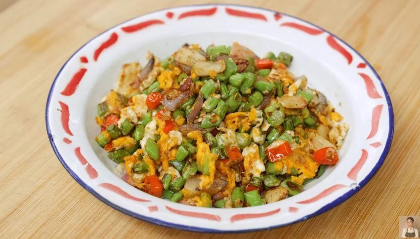 Resep ini menggunakan bahan-bahan yang mudah ditemukan, mulai dari telur, buncis, bawang merah, bawang putih, cabai rawit, hingga sedikit terasi untuk memperkaya aroma.