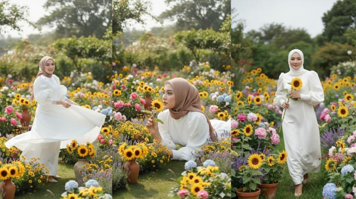 6 Prompt Gemini AI Hadirkan Potret Wanita Berhijab di Taman Bunga, Realistis Bak Foto Asli