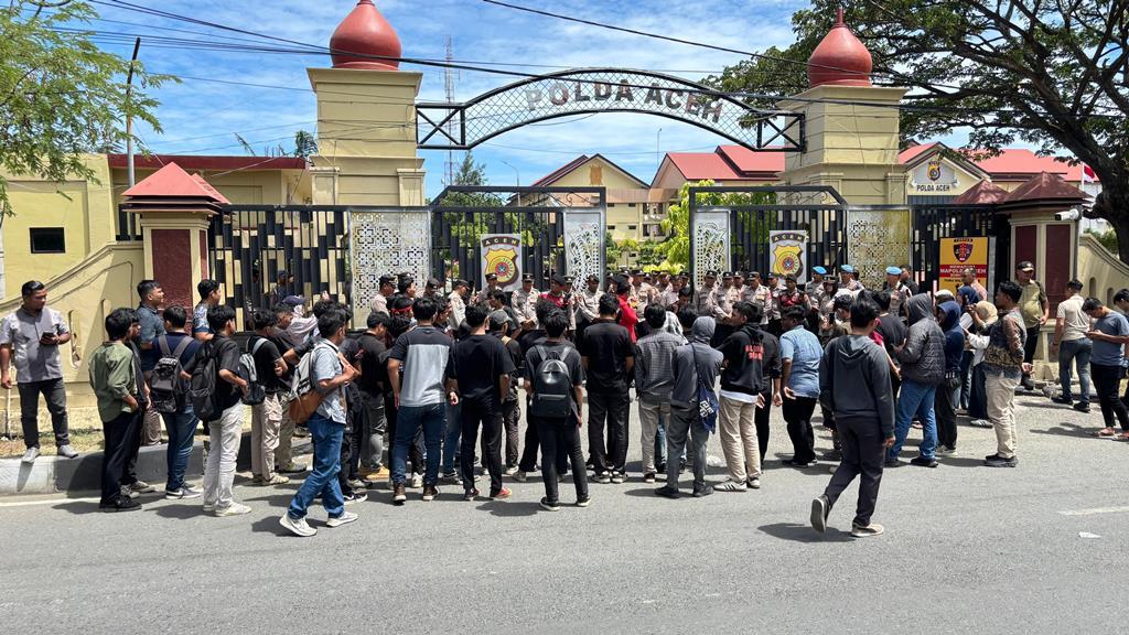 BREAKING NEWS - Massa Demo Polda Aceh, Protes Ojol Tewas Terlindas Rantis