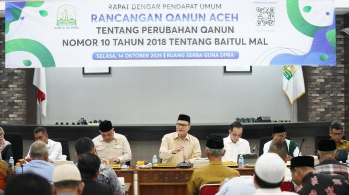 SERAMBINEWS.COM, BANDA ACEH – Komisi VII Dewan Perwakilan Rakyat Aceh (DPRA) menggelar Rapat Dengar Pendapat Umum (RDPU) guna membahas Rancangan Perubahan Kedua atas Qanun Aceh Nomor 10 Tahun 2018 tentang Baitul Mal, di ruang Serbaguna DPRA, Selasa (14/10/2025).