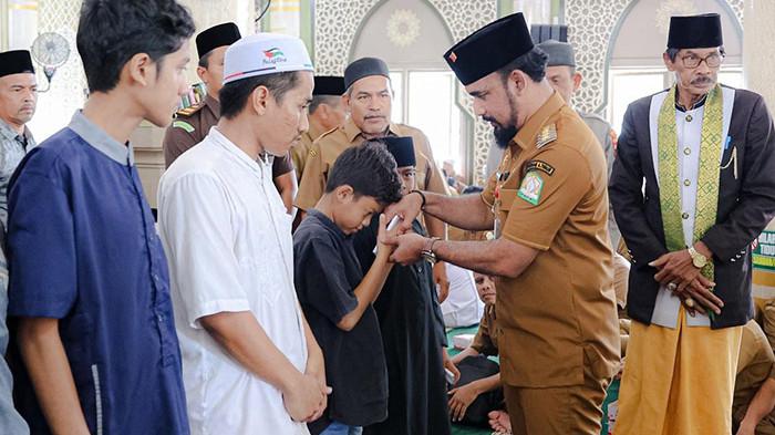 Dalam rangkaian kegiatan tersebut, Bupati Aceh Timur, Iskandar Usman Al-Farlaky, S.H.I., M.Si., turut menyerahkan santunan kepada anak yatim piatu.