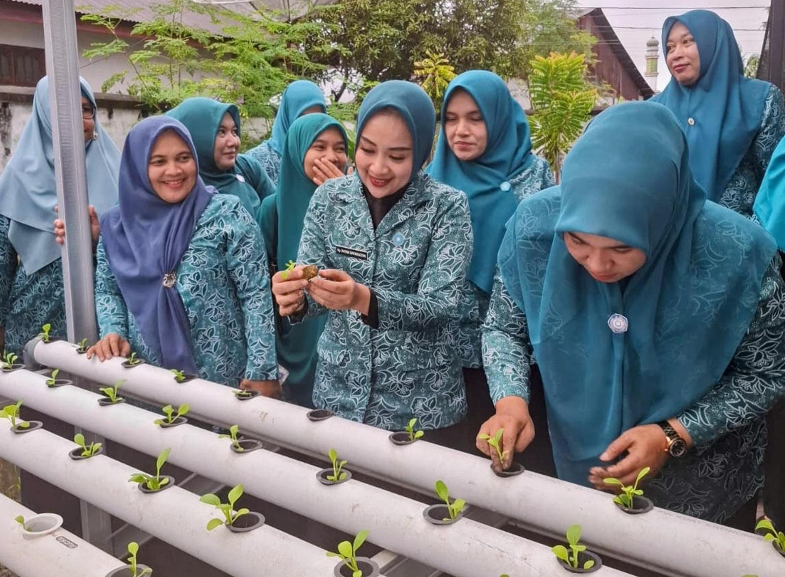 Pada momen tersebut, Ketua TP-PKK Abdya Ratna Sari Dewi menanam perdana cabai, terong, tomat, sawit, pakcoy, dan kangkung.