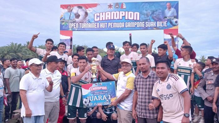 Tim ini berhasil menaklukkan PSM FC dari Mon Dua, Kecamatan Tripa Makmur, lewat drama adu penalti dengan skor akhir 3–1 di Lapangan Gampong Suak Bilie, Sabtu (8/11/2025) sore.