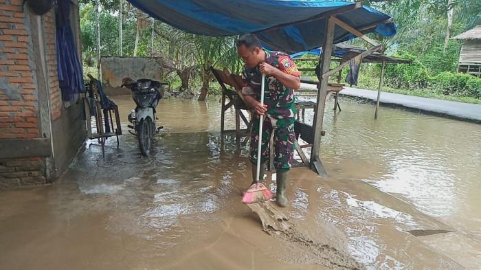 Banjir yang terjadi akibat curah hujan tinggi, sehingga meluap air sungai, mengakibatkan sejumlah pemukiman terendam air dan dipenuhi lumpur tebal. Tanpa menunggu lama, setelah air surut, Babinsa bersama aparat desa dan masyarakat langsung turun ke lapangan membantu proses pembersihan agar kehidupan warga cepat kembali normal.