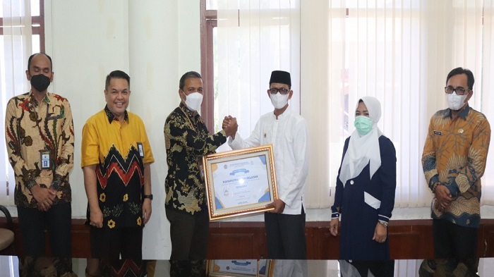 Dirjen Perbendaharaan Kementerian Keuangan Republik Indonesia menyerahkan piagam penghargaan kepada Pemerintah Kabupaten Aceh Selatan