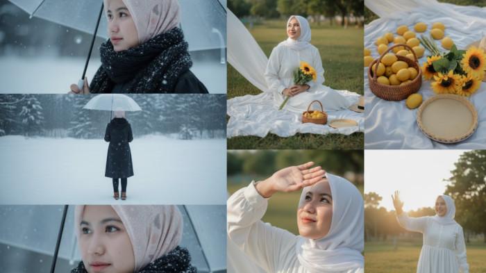 Foto-foto yang dihasilkan Gemini AI tersebut menampilkan sosok wanita berhijab dalam berbagai latar dan suasana, tampil elegan dan modern.