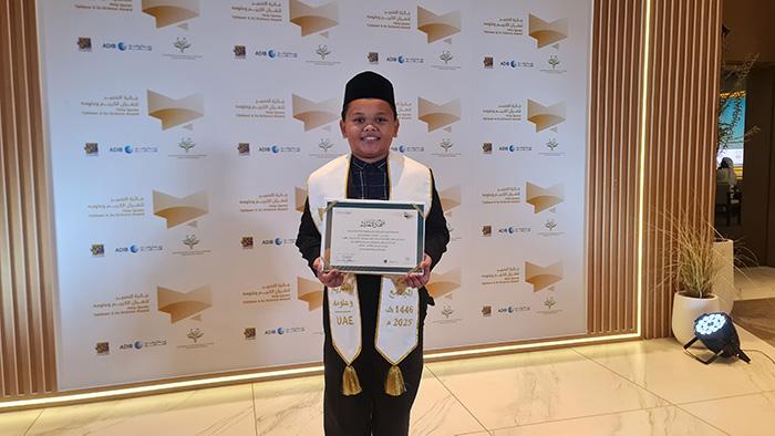 Muhammad Ahsin (9) asal Kota Langsa - Provinsi Aceh yang mewakili Indonesia pada MTQ Internasional Mazamir Daud Ke-7 2022 EchoroukTV - Aljazair