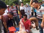 belakangan beredar video seorang bapak-bapak mempraktikan cara membuat kambing anteng sebelum disembelih di momen Idul Adha 2019.
