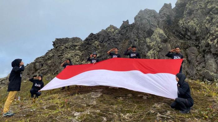 Aktivitas pengibaran bendera Merah Putih di puncak gunung, dilakukan Ekspedisi Pidie Adventure berkolaborasi dengan...