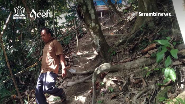 SERAMBINEWS.COM, SINGKIL - Siang itu, peluh mulai membanjiri raga ketika kaki selangkah demi selangkah berjalan menuruni bibir jurang, sebelum sampai ke Air Terjun Lae Silebu.