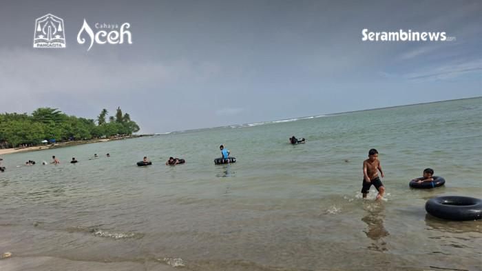 Kini, setiap akhir pekan dan hari libur nasional, kawasan ini ramai dipadati pengunjung. “Kalau hari Minggu, apalagi waktu meugang menjelang Ramadhan atau libur Lebaran, pantai ini penuh sesak,” tutur Suherman sambil tersenyum bangga.