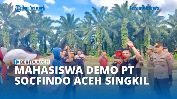 SERAMBINEWS.COM, SINGKIL - Massa yang terdiri dari mahasiswa dan pemuda menggelar unjuk rasa di kompleks perkantoran dan pabrik pengolahan minyak kelapa sawit (PMKS) PT Socfindo Lae Butar di kawasan Rimo, Kecamatan Gunung Meriah, Kabupaten Aceh Singkil, Senin (8/9/2025).